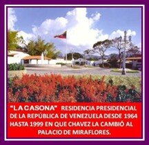 (1) “La Casona” fue residencia de los Presidentes de Venezuela desde 1964, anteriormente era una finca azucarera llamada “La Pastora” hasta que Chávez llegó a la Presidencia y trasladó su residencia al Palacio de Miraflores. Actualmente La Casona es residencia del Vicepresidente y de las hijas del difunto Chávez (q.e.p.d.)
