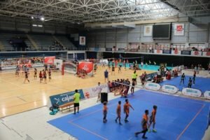 El Palacio de los Juegos Mediterráneos respiraba voleibol de un lado a otro. En total diez pistas, ocho grandes y dos pequeñas, repartidas por toda la sala en la que se disputaban simultáneamente un partido de cada categoría. Más de 900 participantes y un millar de personas entre el público están disfrutando con este deporte a lo largo de todo el día de hoy, sábado, en la segunda edición de la ‘Preseason Cup’ organizada por el club Cajamar Mintonette Almería.