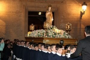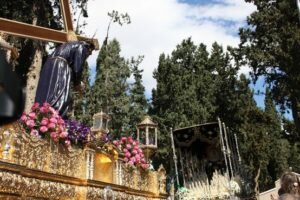El Paso Negro continuó después el recorrido procesional con la salida de la Imagen de María Magdalena, portada a hombros, como es tradicional, por niños y niñas del municipio, la Imagen de San Juan Evangelista y la Imagen de la Virgen de los Dolores, a la que una pulpileña le dedicó una saeta compuesta por ella misma en la puerta del Templo Parroquial. El Paso Negro contó este año con la Agrupación Musical “San Miguel Arcángel” de Pulpí, la Agrupación Musical “Virgen del Carmen” de Dúrcal (Granada), la Agrupación Musical “Virgen de Belén” de Noalejo (Jaén) y la Banda “Los Iris” de Instinción (Almería).