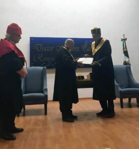 El catedrático Ramón Herrera Campos tiene un fuerte vínculo con México, donde lleva décadas trasladándose desde Almería para realizar colaboraciones en el campo de la docencia y la investigación, en áreas como el Derecho Agrario, Derecho Civil y Derecho de Familia. Actualmente se encuentra impartiendo un master sobre Derecho en la Universidad Potosina, y ha dirigido formación de postgrado en las universidades de Xalapa, Monterrey o Nuevo León, entre otras muchas. Además, ha dirigido la tesis doctoral de 29 doctores mexicanos. Ramón Herrera se mostraba muy agradecido por el reconocimiento: “es un honor recibir esta distinción de la querida Universidad Potosina y de manos de su rector. Con México siempre he tenido un vínculo especial. Además, me siento orgulloso de haber contribuido a tender puentes de colaboración en el ámbito universitario entre Almería y México”.