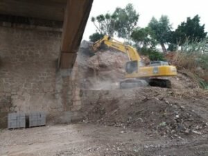 Estas actuaciones previas que se están llevando a cabo consisten en la preparación del terreno sobre el que se ejecutarán las obras de refuerzo del puente y la ampliación de la pasarela del puente a ambos lados. Los trabajos llegan tras las labores de medición y catas para constatar el estado en que se encuentra esta infraestructura, que tuvieron lugar el pasado mes de mayo.