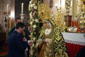 Una jornada muy especial incluida en el 75º Aniversario Fundacional de la Hermandad y que ha contado con la visita del concejal del Área de Promoción, Carlos Sánchez, que ha querido acercarse hasta el lugar para felicitarla en su día participando en el besamanos junto al hermano mayor, José Luis Cantón.