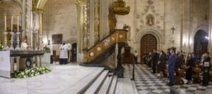A la Misa también han asistido diferentes autoridades civiles y militares, representantes de las hermandades y cofradías de Almería, así como varias decenas de fieles.