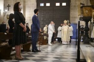 Este año no se ha podido celebrar la tradicional procesión por las calles de Almería en la que participan los niños de Comunión y las Hermandades de la ciudad como consecuencia de la crisis sanitaria del coronavirus. Sí ha tenido lugar una pequeña procesión en el interior de la Catedral.
