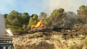 Era a esa hora cuando se recibía el aviso del fuego, ante el que se mando una dotación inicial de un grupo de bomberos forestales, dos agentes de medio ambiente y un vehículo autobomba.