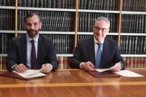 La firma del convenio de colaboración tuvo lugar ayer en Madrid, y corrió a cargo de Francisco Martínez-Cosentino, presidente de Grupo Cosentino, y de Eduardo Fernández Palomares, Director Financiero de Acción Cultural Española (AC/E).