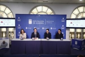 El diputado de Turismo, Fernando Giménez, el director de la editorial, Alberto Cerezuela, el director de Cultura y Cine, Manuel Guzmán, y la copresentadora de la gala y editora, Raquel Martínez, han revelado los detalles de una velada en la que se entregarán 12 premios entre los 36 nominados. Diputación, a través de Costa de Almería, el Ayuntamiento de Roquetas y la Obra Social ‘La Caixa’ son los grandes aliados de la editorial para consolidar este evento en la agenda cultural de la provincia.