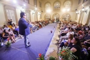 El diputado de Promoción Agroalimentaria y Régimen Interior, Antonio J. Rodríguez, y la presidenta de AFIAL, Pilar Quesada, han dado la bienvenida a los 160 asistentes que han llenado el aforo de esta céntrica ‘pasarela’ por la que han desfilado 16 modelos profesionales y más de una decena de mujeres que pertenecen a esta Asociación. Esta iniciativa solidaria ha contado con el apoyo de cinco marcas y tiendas almerienses (Tetoca Tocados, Nieves Pérez, Gala by Ángel Bretones (director de Escuela de Moda ESME), Maquilladoras Gayaba Beauty y Sorroche Artesanía); y la coordinación de la agencia de modelos La Negra Francisca.