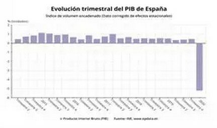 Con el fuerte retroceso del PIB del primer trimestre, España se asoma a la recesión, ya que para que una economía entre en lo que se considera recesión técnica se requieren dos trimestres consecutivos de crecimiento negativo. En todo caso, se da por hecho una contracción del PIB en el segundo trimestre, mayor a la del primero, debido a que el periodo abril-junio se vio afectado por la paralización de numerosas actividades económicas como consecuencia de la declaración del estado de alarma.