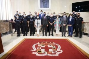 Acompañado por el concejal de Economía y Función Pública, Juanjo Alonso, y la concejala de Seguridad y Movilidad, María del Mar García Lorca, y otros miembros de la Corporación municipal, así como el superintendente de la Policía Local, Jorge Quesada, el primer edil ha felicitado a los nuevos agentes que “han sabido afrontar con los mejores valores la respuesta de la sociedad almeriense en estas semanas tan difíciles”, ya que como ha recordado “junto a vuestros compañeros del cuerpo de Bomberos y Protección Civil, formáis parte de esa primera línea de respuesta municipal que se activa ante cualquier contingencia”.