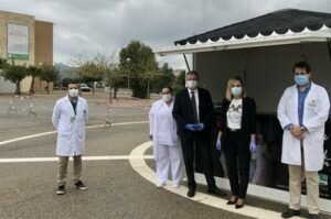Desde este viernes se ha habilitado un punto de toma de muestras rápida a profesionales sanitarios y servicios esenciales, siguiendo los protocolos del Ministerio de Sanidad. La delegada del Gobierno de la Junta de Andalucía en Almería, Maribel Sánchez Torregrosa, junto al delegado territorial de Salud y Familias, Juan de la Cruz Belmonte, y el director gerente del Hospital La Inmaculada, José Miguel Medina, han recorrido este espacio ubicado en el antiguo helipuerto dentro del recinto del Hospital. Esta toma de muestras se realiza sin que el profesional con síntomas y bajo cita previa, se baje del vehículo. De esta forma, la toma se realiza de una forma más rápida y minimizamos los riesgos de contagio.