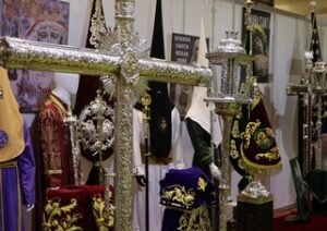 Además de un vídeo promocional, en el stand de Berja, las nueve cofradías están mostrando lo mejor de su extenso patrimonio como algunos libros de reglas, la Corona de Ntra. Sra. del Amor y la Esperanza, estandartes corporativos, la saya de Ntra. Sra. de las Mercedes, la saya de Ntra. Sra. de la Amargura, el paño de la Verónica, la túnica de cola de Ntro. Padre Jesús Nazareno, entre otros enseres.