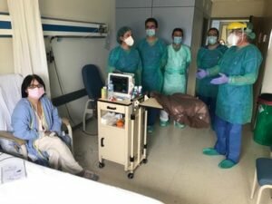 El equipo directivo del Hospital Universitario Torrecárdenas visita a los pacientes ingresados por coronavirus