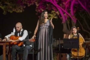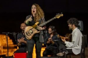 Tras arrancar por seguiriyas y con el bajo colgado, como viene trabajando en los últimos años y en su último disco, ‘Delirium Tremens’, sorprendió con la intensidad de un cante que sonó rotundo y vigoroso con el sonido amplificado de sus cuatro cuerdas. Hizo referencia a que “este es un sitio que me encanta y Almería es una tierra donde vengo mucho desde niña, ojalá pueda volver muy pronto” antes de arrancar por milongas, bordar una soleá con suma perfección y hacer más jondo el cante por alegrías.