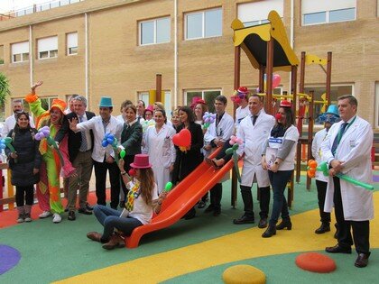 Paralelamente, en el Patio ‘Bejamín Narbona’ del centro se ha creado un parque infantil, totalmente acolchado en el que se incluyen diversos juegos de volumetría de caucho, un tobogán y otros elementos, colocados para el disfrute de los “pequeños pacientes” que acuden cada día al centro.