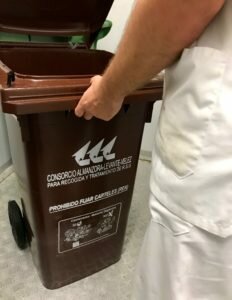 Desde el pasado mes de junio, el Hospital “La Inmaculada” cuenta con dos contenedores marrones de residuos orgánicos, uno para segregar y recoger residuos de la cafetería y otro para las instalaciones de cocina.