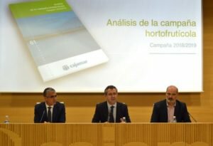 A continuación, han intervenido David Uclés, director del Servicio de Estudios de Cajamar, quien ha reseñado las principales cifras de la campaña, y Roberto García Torrente, director de Innovación Agroalimentaria, que ha recordado la capacidad que ha tenido el sector para ir superando todas las dificultades que se ha encontrado en sus más 50 años de historia, así como la apuesta decidida que debe realizar por la sostenibilidad del modelo de producción, su correcta ordenación territorial y social, y por el carácter saludable de nuestros productos.