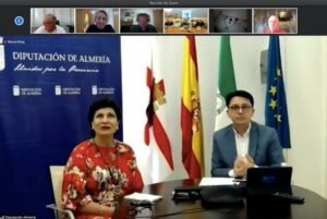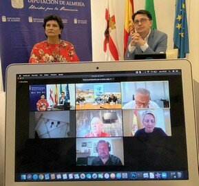 En el encuentro virtual con los medios de comunicación, a través de la plataforma Zoom, han participado el diputado de Cultura, Manuel Guzmán, el edil de Cultura, Diego Cruz, así como los delegados territoriales de la Junta de Andalucía, Emilio Ortiz y Eloísa Cabrera, la diputada de Iniciativas Europeas, Carmen Navarro, así como los responsables del Movimiento Cultural en apoyo a los artistas almerienses tras el confinamiento: Felipe Berenguel, Salvador Martínez y Sergio Núñez.