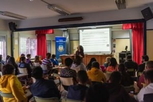 El salón de actos del IES Los Ángeles ha acogido la segunda jornada de actividades del programa en la que han participado 62 alumnos de entre 14 y 17 años que, acompañados por sus profesores de inglés, Maite Iglesias, y de Geografía e Historia, Javier Aliaga, abordaron los procesos participativos en la ciudad y se acercaron al pasado histórico de Almería de la mano de la piscóloga María del Mar Díez, que les habló de almerienses relevantes en la historia, de monumentos y de acontecimientos históricos más destacados. Por su parte, los jóvenes aportaron ideas sobre la Almería del futuro con el horizonte 2030, hablaron de infraestructuras y también de servicios.