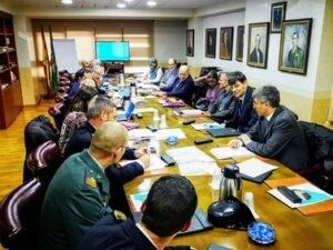 Antes del examen sobre el terreno, los inspectores mantuvieron un encuentro con el presidente de la Autoridad Portuaria, Jesús Caicedo, y con una representación del equipo directivo de la APA, reunión en la que también participaron representantes de Puertos del Estado, de Capitanía Marítima, así como de la Guardia Civil y la Policía Nacional. En la reunión, Jesús Caicedo recordó que el Puerto de Almería ya superó satisfactoriamente en 2009 una inspección de la CE, y destacó que en los diez años siguientes, la APA ha realizado grandes inversiones en materia de seguridad, inversiones que, según se comprometió, se seguirán realizando en el futuro. En este sentido, anunció que la APA tiene en marcha el proyecto para la construcción de un edificio integral y moderno, compartido por las Fuerzas y Cuerpos de Seguridad del Estado y la Policía Portuaria, que mejorará la coordinación y el servicio de seguridad.