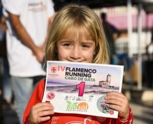 El cambio de hora ha despertado a los almerienses este domingo, con ganas de hacer deporte, y no había mejor plan que disfrutarlo en Cabo de Gata, en pleno parque natural en un soleado día de otoño. Por eso, no es de extrañar que se hayan agotado las 350 plazas disponibles. De nuevo, la ciudad ha demostrado que es deportiva y se ha sumado a la cuarta edición la Flamenco Running Cabo de Gata, que se ha celebrado a lo largo de la mañana con las modalidades de 13 kilómetros de carrera para los runners, 13 y 8 kms de senderismo, y pruebas infantiles desde chupetines, alevines, infantil y cadete.