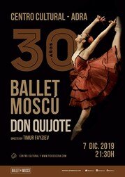 El Centro Cultural de Adra acoge este sábado 7 de diciembre, a las 21:30 horas, el espectáculo ‘Don Quijote’ del Ballet de Moscú. Esta afamada compañía celebra su 30 aniversario sobre los escenarios de todo el mundo, y lo hace con una de las obras más emblemáticas del repertorio clásico del ballet, ‘Don Quijote’. Las entradas para disfrutar de este espectáculo están aún a la venta en taquilla y en la web www.tickescena.com a un precio único de 18 euros.