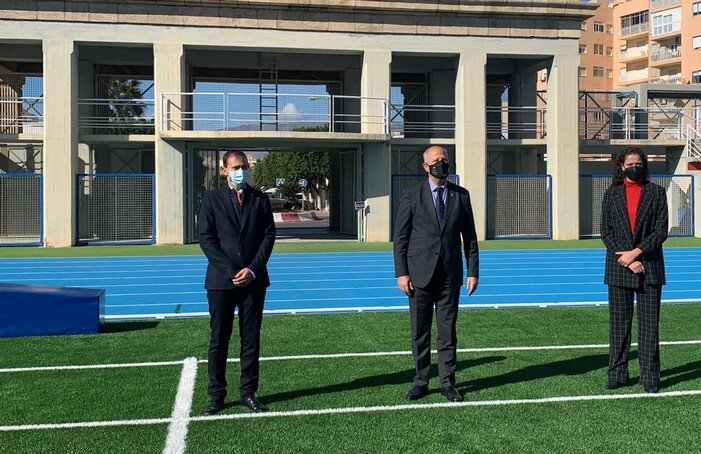 El consejero subraya la inversión de más de 1,8 millones para responder a una demanda histórica de la sociedad almeriense. Destaca la renovación de la pista de atletismo, del césped artificial del campo y las mejoras de accesibilidad.
