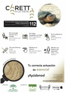 Desde Serbal están realizando un cuaderno educativo para repartirlo en las acciones de playas y tomar conciencia de lo que está sucediendo en la costa almeriense. En este material se dan seis consejos básicos, pero claves para su protección: no ponerse delante de la tortuga, no hacer fotos con flash, no molestar ni tocar, no usar linterna o luz, mantenerse en silencio y mantener distancia de seguridad. Y, por encima de todo, llamar inmediatamente al 112 e informar del avistamiento de la tortuga marina o su rastro.