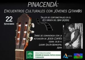 En primer lugar, el viernes 22 tendrá lugar una actividad que lleva por nombre ‘Pinacendá: encuentros culturales de jóvenes gitanos andaluces’. En esta jornada se va a realizar, por la mañana, un taller de cortometrajes de la mano de la ‘Asociación Cienjoven Dospuntocero’ en el IES Virgen del Mar. En este taller se enseñará a los alumnos los conocimientos más básicos del audiovisual para que, posteriormente, puedan plasmarlos en el cortometraje que realizarán durante las últimas dos horas. El corto, que tendrá a la raza gitana como eje principal, será realizado íntegramente por los alumnos del taller, incluido el guión para el que se les facilitará un conflicto, un género cinematográfico, un objeto y una localización.