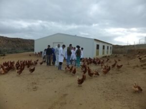 La granja tiene una capacidad para mil ochocientas gallinas de puesta y su propietario explicó a los futuros ingenieros por qué había apostado firmemente por la producción campera, forma de cría cada vez mas demandada, junto con la producción ecológica, por los consumidores, cuya sensibilidad con el bienestar animal se demuestra en el contenido de la cesta de la compra. Por su parte, el personal técnico de la OCA comentó con los asistentes los requisitos legales no solo para el registro y puesta en marcha de una explotación ganadera, si no también aquellos aspectos de manejo, control y documentación a observar por los ganaderos y cuya supervisión es competencia de la Delegación Territorial.