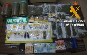 Los Agentes intervienen 600 gramos de cogollos y picado de marihuana, balanzas de precisión,680 euros en metálico, equipos informáticos, armas blancas, 360 gramos de hachís, además de pequeñas cantidades de heroína, cocaína, cristal, éxtasis, setas alucinógenas, LSD y GHB.