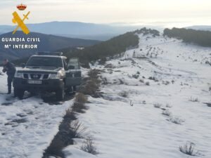 Los agentes de La Guardia Civil se desplazan al lugar a la mayor brevedad posible, teniendo que realizar parte del trayecto a pie, debido a que la cantidad de nieve acumulada durante el temporal hace imposible la transitabilidad de vehículos en esa zona.