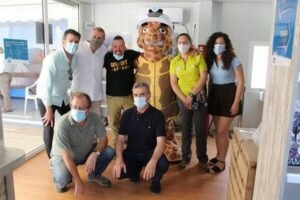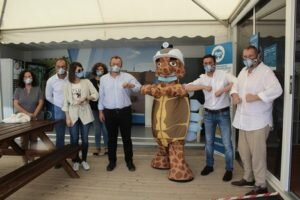 Terrín fue presentado oficialmente durante la visita del presidente de Diputación de Almería, Javier A. García la pasada semana, en la que se dieron a conocer las nuevas instalaciones del complejo turístico: un ascensor de casi 20 metros para facilitar la visita a personas con movilidad reducida, y la galería “Colas de Golondrina”, que alberga auténticos vestigios de la época minera. También estuvieron presentes el Alcalde de Pulpí, Juan Pedro García, y los concejales de su Equipo de Gobierno, que junto al presidente, posaron acompañando a la nueva, y ya reconocida, mascota de La Geoda de Pulpí.