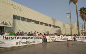 Tras gritar «basta ya», los manifestantes han reclamado a Madrid, a Sevilla y a Bruselas «trenes dignos» para Almería y medios como los que «otros disfrutan». «Los queremos ya porque no queremos seguir siendo la provincia olvidada, la más injustamente tratada», han lamentado tras recordar que el turismo y la agricultura podrían mejorar con este medio de transporte.