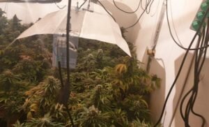 Durante la intervención, los funcionarios policiales descubrieron un almacén donde había una plantación de marihuana con varios transformadores, dos aires acondicionados, ventiladores, extractores y productos químicos para el cultivo, por lo que fue detenido su propietario como presunto autor de un delito contra la salud pública.