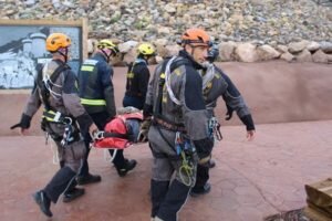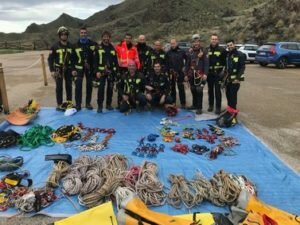 El ejercicio de rescate está dentro de los Planes de Formación que la Diputación Provincial tiene todos los años, coordinado por este Consorcio, y ha consistido en la evacuación de una víctima desde la cuarta fase de la Mina Rica, en una de las cavidades más profundas de ésta, hacia el exterior. Anclajes, mosquetones, y cuerdas han sido algunos de los recursos empleados por los componentes del equipo de Bomberos del Levante Almeriense, que han efectuado un exitoso ejercicio de rescate en las instalaciones, del ya conocido espacio turístico, la Geoda de Pulpí.