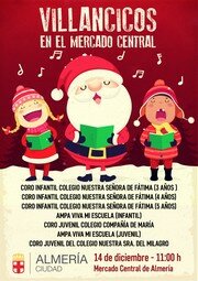 Así, los almerienses y turistas que paseen por el Mercado Central entre las 11 y las 13.00 horas, aproximadamente, se encontrarán con villancicos, de creación propia y tradicionales, a cargo de los tres grupos del Coro Infantil Colegio Nuestra Señora de Fátima, de 3, 4 y 5 años, con el Ampa Viva Mi Escuela (Infantil) y con los coros juveniles del Colegio Compañía de María, Ampa Viva Mi Escuela y Colegio Nuestra Señora del Milagro.