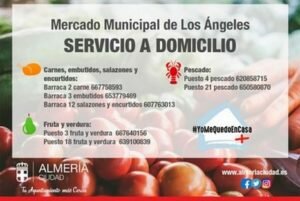 A partir de este miércoles, 25 de marzo, los Mercados Central y Los Ángeles han incorporado el servicio de reparto a domicilio, para lo cual los comerciantes que se han sumado a la iniciativa proporcionan sus teléfonos con el fin de que los almerienses puedan realizar las compras desde su casa, a donde se les lleva los productos frescos del mercado. Desde el Ayuntamiento se está promocionando este servicio y los teléfonos de contacto, a través de redes sociales y comunicación, para que puedan ser usados por todos los ciudadanos.