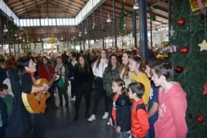 La Navidad se respira en toda la ciudad, y este sábado, con mayor intensidad, se ha vivido en el Mercado Central con la tradición de los villancicos.