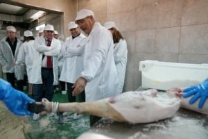 Sé que esto no va a pasar porque confiamos plenamente en la labor de un Consejo Regulador que seguirá velando por que el consumidor sepa en todo momento qué se está llevando a la boca, al tiempo que sabrá conservar los modos artesanales y la pureza de nuestro cerdo más autóctono”. Ejemplo de ese trabajo pulcro y meticuloso con un producto de primera calidad y excelencia como son los jamones y paletas de DOP Jabugo es el que lleva a cabo la empresa Montesierra, donde el presidente de la Junta de Andalucía ha realizado un recorrido en el que ha podido observar sus instalaciones y su género. Una empresa familiar dedicada desde el siglo XIX al negocio del jamón, lo que ha implicado a cinco generaciones.
