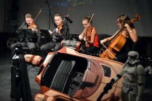 La actividad, organizada por Ignacio Mañas y con la colaboración del Área de Cultura y Educación del Ayuntamiento de Almería en el marco de la programación del ‘Otoño Cultural’, contó con la introducción musical del cuarteto de cuerda de la Orquesta Ciudad de Almería, con José Vélez y Salvador Esteve al violín, Paloma Oliver al violonchelo y Clara García a la viola, interpretando con maestría los momentos más conocidos de una banda sonora original que es inmortal, universal y casi podemos decir que interplanetaria.