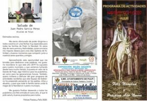 Durante la presentación, en la que han intervenido el alcalde de Pulpí, Juan Pedro García, y el concejal de Cultura, Festejos y Turismo, Juan Bautista López, se han dado a conocer las numerosas actividades dirigidas a toda la familia, que se iniciarán este fin de semana, concretamente el viernes 13 de Diciembre, con la inauguración del Belén Gigante Artesanal realizado por el pulpileño Alfonso Muñoz, e instalado en la Plaza de la Libertad de Pulpí, así como el tradicional “Mercado Navideño” (14 y 15 de Diciembre).