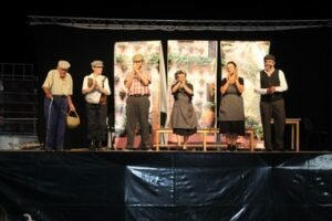 A continuación, a las 22:15 horas la Plaza de Toros Portátil de Terreros volvió a convertirse anoche en el foco de la cultura de las noches de verano pulpileñas. En esta ocasión, fue el Grupo de Adultos Municipal de Teatro el encargado de poner el toque de humor, con obras de género cómico divertidas y protagonizadas por once actores aficionados de Pulpí. Las obras interpretadas bajo las directrices de Natha Silvente y Antonio Cervellera fueron: “Doña Sabina ”, “La Cotilla Cotilleada” y “La Cotilla Desemalhostiada”.