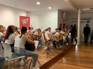 La orquesta infantil y juvenil de la Escuela Municipal de Música y Danza de Roquetas de Mar rindieron homenaje al luthier almeriense Antonio de Torres con dos conciertos de guitarras en el salón de actos del Museo de la Guitarra de la capital en la mañana del pasado sábado. El acto se llevó a cabo dentro del marco de las II Jornadas Homenaje a Antonio de Torres.