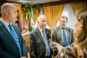 El presidente de la Cámara, Jerónimo Parra, ha confirmado la apuesta por el Palacio de Congresos. “Hemos tratado muchas iniciativas interesantes para todos, para Roquetas, para la Cámara y para toda la provincia, que vamos a llevar a cabo, y he notado en el alcalde de Roquetas muchas ganas de hacer cosas y su disponibilidad ante las propuestas que traemos para darle vida a nuestro Palacio de Congresos, sobre el que coincidimos que es un espacio muy importante. Vamos a hacer apuesta muy grande, el Ayuntamiento nos ha confirmado su apoyo, que será muy provechoso y vamos a disfrutarlo todos los almerienses”, ha declarado.