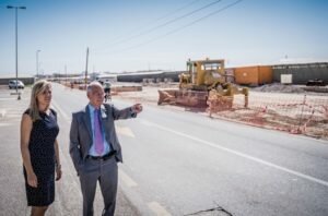 Gabriel Amat, alcalde de Roquetas de Mar, acompañado por Rocío Sánchez, concejal de Presidencia, Agricultura y Pesca, han visitado este miércoles el avance de las obras de desdoblamiento de la carretera del Cementerio o de la Yegua Verde. “Estoy satisfecho de haber podido contribuir a que se inicie una obra como ésta, que tiene una de las mayores afluencias diarias de tráfico y bicicletas del municipio. Cuando se termine esta salida con cuatro carriles, va a ser una de las obras importantes que estamos haciendo en Roquetas. Será una de las principales salidas de la variante”, ha explicado Gabriel Amat.