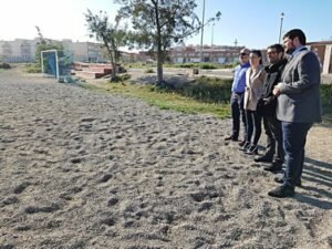 El Ayuntamiento de Roquetas de Mar trabaja en la licitación del proyecto que va a permitir acondicionar una zona deportiva en las 200 Viviendas, ubicada en el antiguo campo de fútbol. El objetivo es ofrecer un espacio para uso y disfrute de los vecinos y a la vez contribuir a la integración y dinamización de las barriadas de la ciudad. El concejal de Desarrollo Urbano, Francisco Gutiérrez, la edil de Servicios Sociales, Loles Moreno, y técnicos municipales han visitado los terrenos que albergarán las futuras instalaciones.