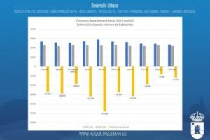 Las cantidades estimadas indican que entre el Viernes de Dolores y el Domingo de Resurrección hubo una bajada cercana a los 30 millones de litros de agua. “Los datos, por desgracia, ponen de relieve la paralización del sector servicios, tanto en su vertiente turística como para aquellos que tienen su segunda residencia en la ciudad. Y es ahí donde habrá que verter nuestros esfuerzos el mismo día que se reinicie la actividad, ya que es un sector clave para Roquetas de Mar”, concluye.