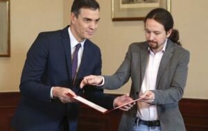 El pacto entre el PSOE y Unidas Podemos para un gobierno de coalición que han firmado este martes el presidente Pedro Sánchez y el secretario general de Podemos, Pablo Iglesias, parte con 155 votos en el Congreso y para superar la sesión de investidura necesitaría sumar a otras fuerzas. Una de las posibilidades es el apoyo de PNV, Más País, Partido Regionalista Cántabro, Teruel Existe y Nueva Canarias más la abstención de los independentistas de ERC y del BNG.