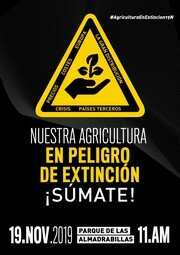 Bajo el lema ‘Nuestra Agricultura en Extinción’ y el hashtag #AgriculturaEnExtinción19N se espera una masiva movilización el próximo día 19 de noviembre en Almería, a la que se han sumado ya lo ayuntamientos de Adra, El Ejido, Níjar, Vícar, Roquetas de Mar, La Mojonera y Pulpí; empresas de la industria auxiliar como Agrobío, la Asociación de Semilleros Hortícolas de Andalucía, Asehor; la Federación de Regantes Feral, la Mesa del Agua, así como las comunidades de regantes Tierra de Almería, Cuevas y Palomares; la Asociación de Mujeres Agricultoras, GEA, AMFAR y CERES; otras asociaciones de agricultores; UGT, así como el sector productor y comercializador de Granada y agricultores de Málaga.